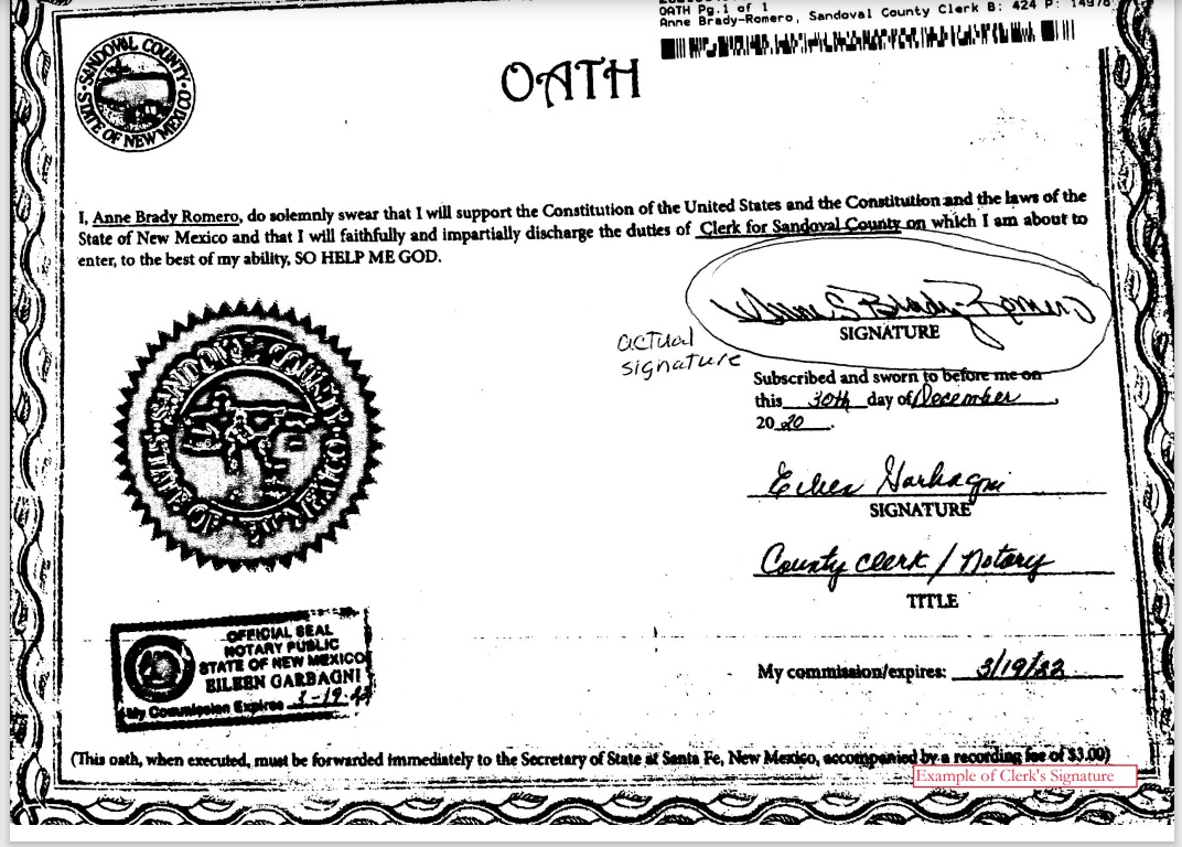I am requesting the Sandoval County Clerk, Anne Brady-Romero resign as County Clerk due to her dereliction of duty and due to a betrayal of her Oath of public office. Because the trust of the citizens of this county has been betrayed, every citizen has standing to request the same.”