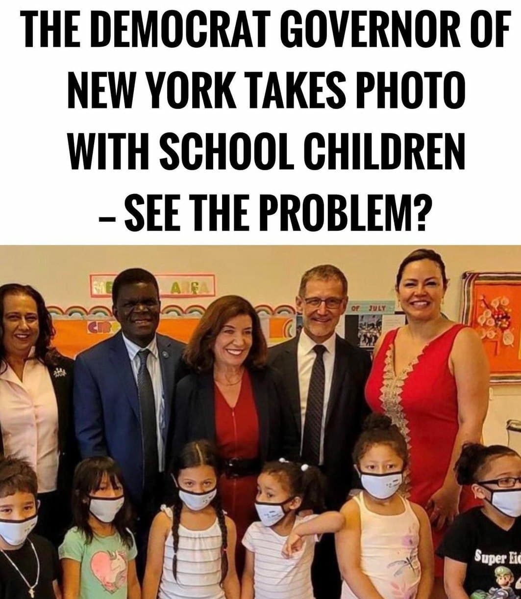 Masking up is so vital to “stopping the spread,” that Melvoir doesn’t need to wear masks, only children do.