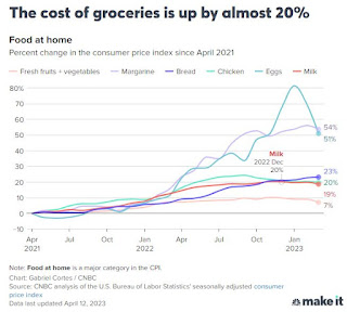 First and foremost, food inflation which is up 20% since 2021 here in America, and is also up in Canada, are not caused by the grocery stores and large chains, they are just being used as a scapegoat to direct the anger of the populace.